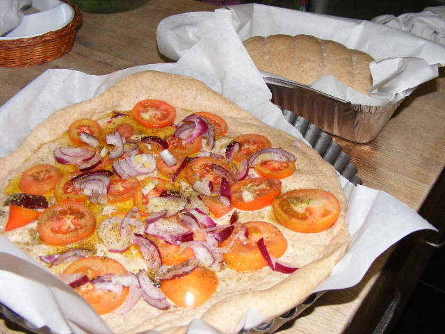 Pronti per essere infornatiFinchè si scalda il forno la focaccia si fa bella con gli ultimi pomodori dell'orto, cipolla di Tropea, olio. Azioni sul documento |