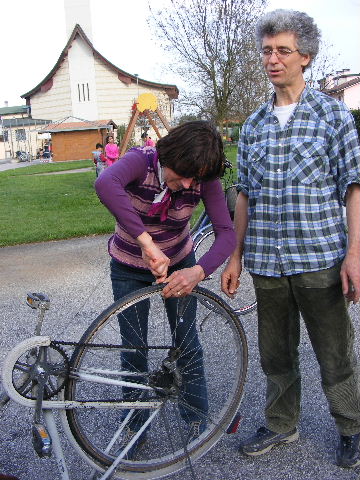 Donata all'opera per togliere un copertone